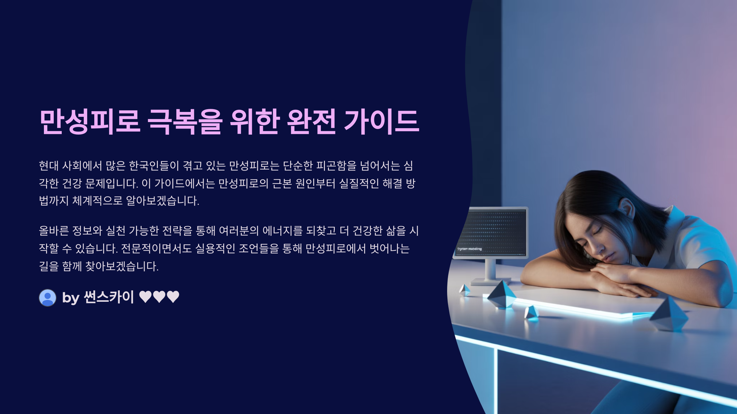이 글에서는 만성피로의 원인부터 실질적인 개선 방법까지 전부 다뤄볼게요. 꼭 필요한 정보만 골라서 알려줄 테니 지금부터 집중해 주세요!