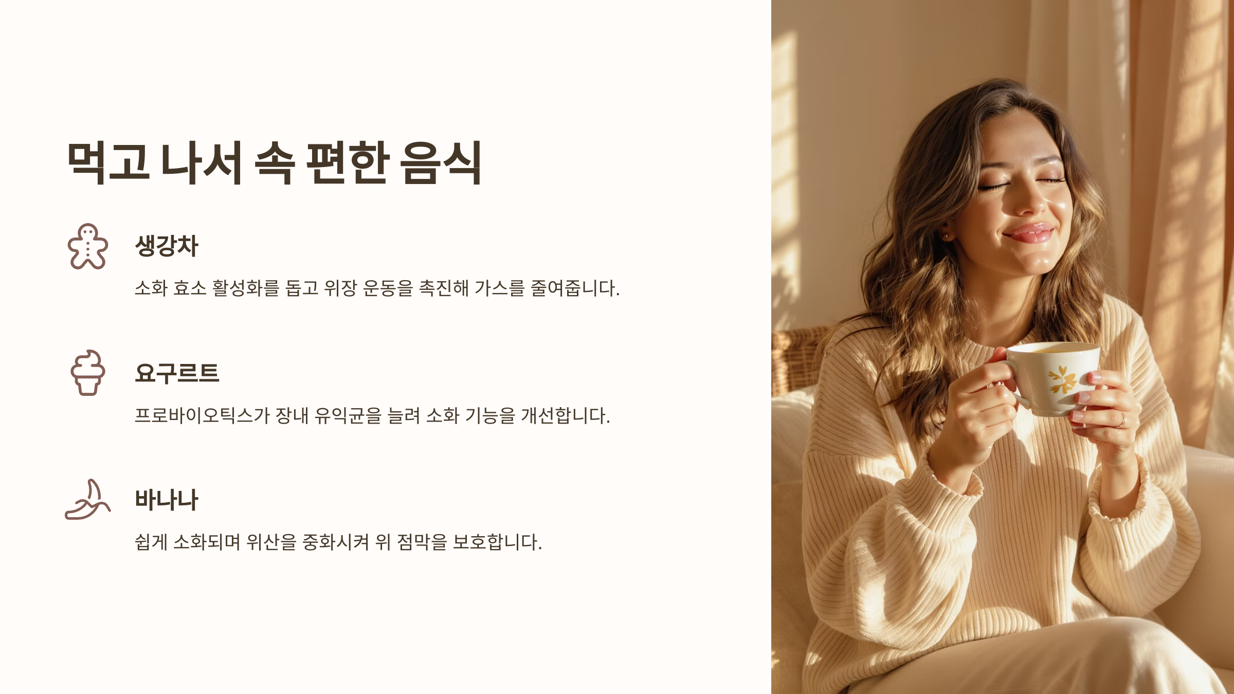 | 음식 | 소화 도움 포인트 |