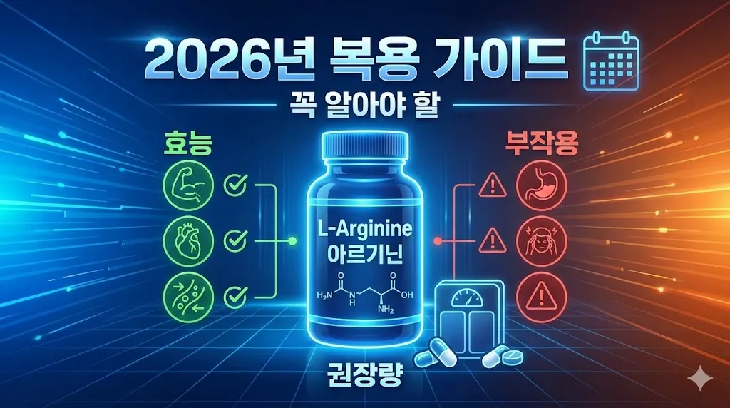 아르기닌은 대체로 안전한 아미노산이지만, 특정 기저 질환이 있거나 과다 복용할 경우 부작용이 나타날 수 있습니다. 2026년 최신 안전 가이드라인에 따른 주요 주의사항은 다음과 같습니다.