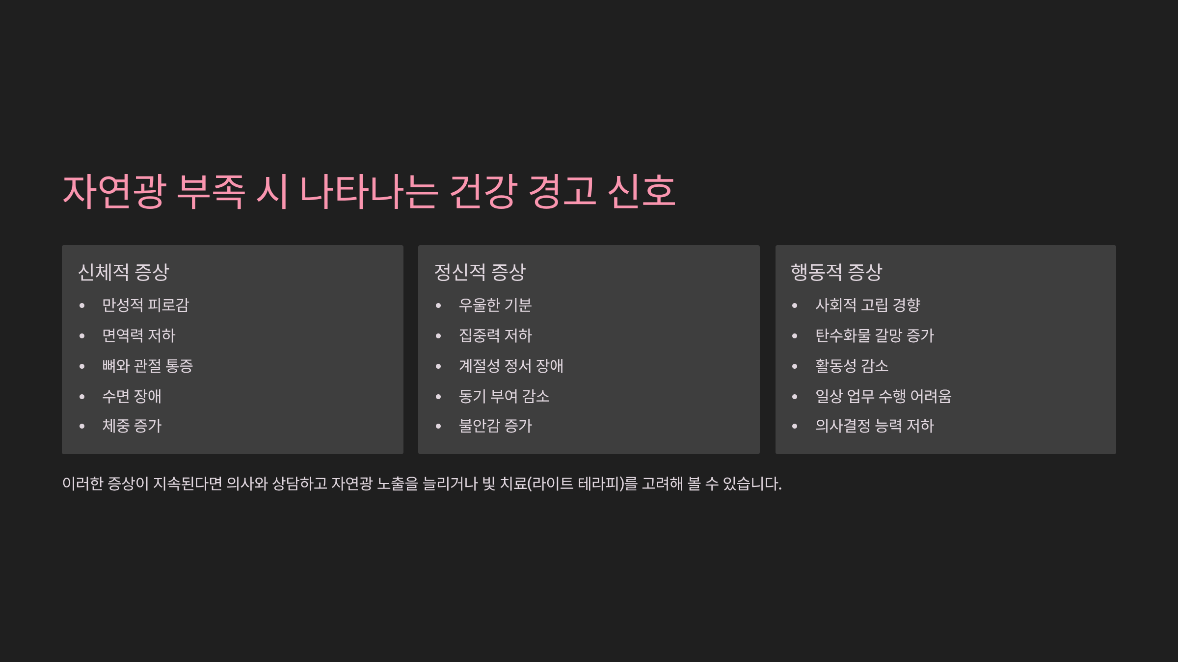 ⚠️ 자연광 부족 시 발생하는 증상