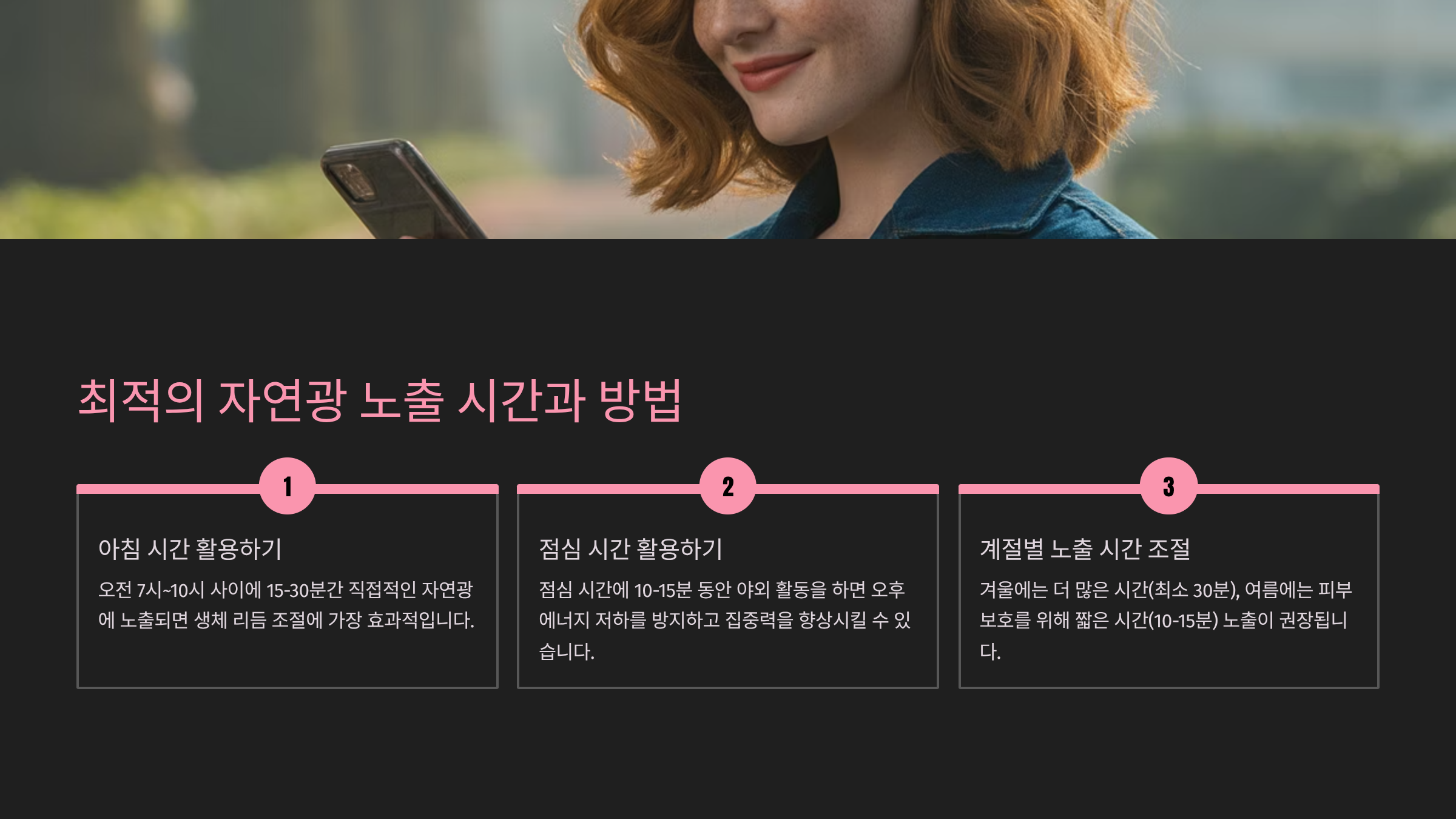 | 하루 권장 | 15~30분 자연광 |