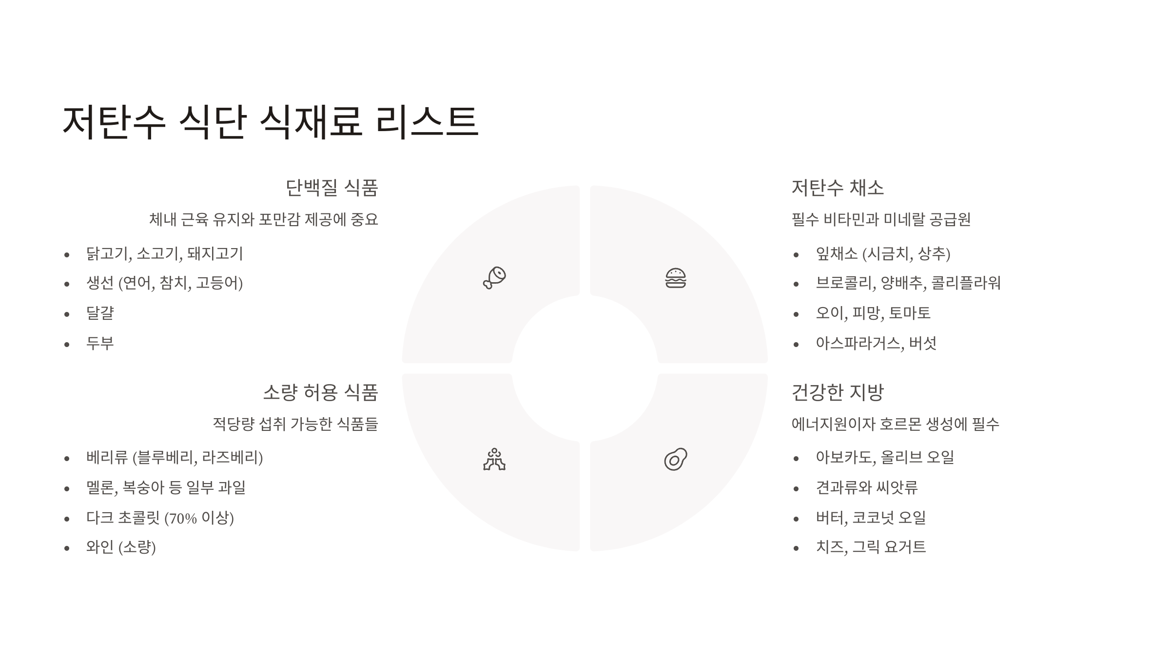 균형 잡힌 저탄수 식단은 장점은 살리고, 단점은 줄이는 방식으로 접근하면 가장 좋아요. 무리하지 않고 내 몸의 리듬에 맞춰 조절해보세요!