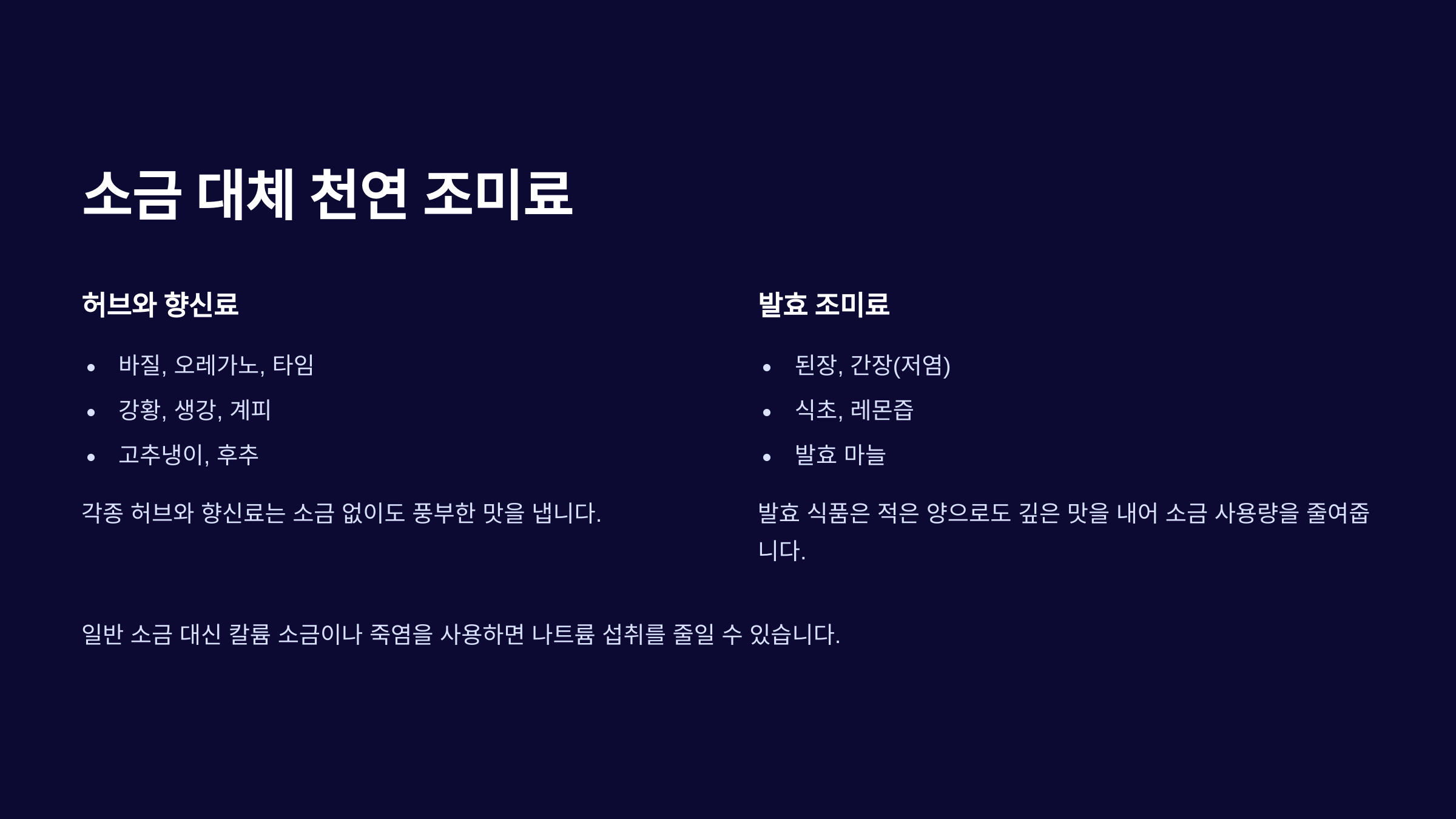 소금 대체 천연 조미료 정리 🧂