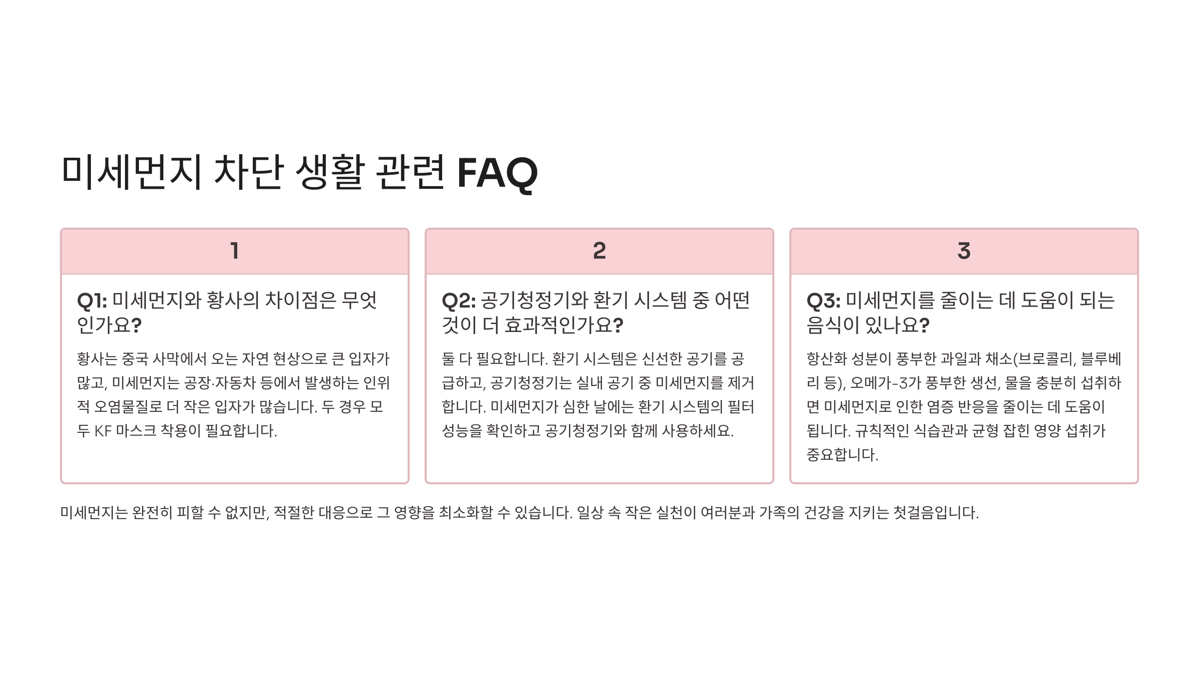 📌 미세먼지 차단 생활 관련 (FAQ)