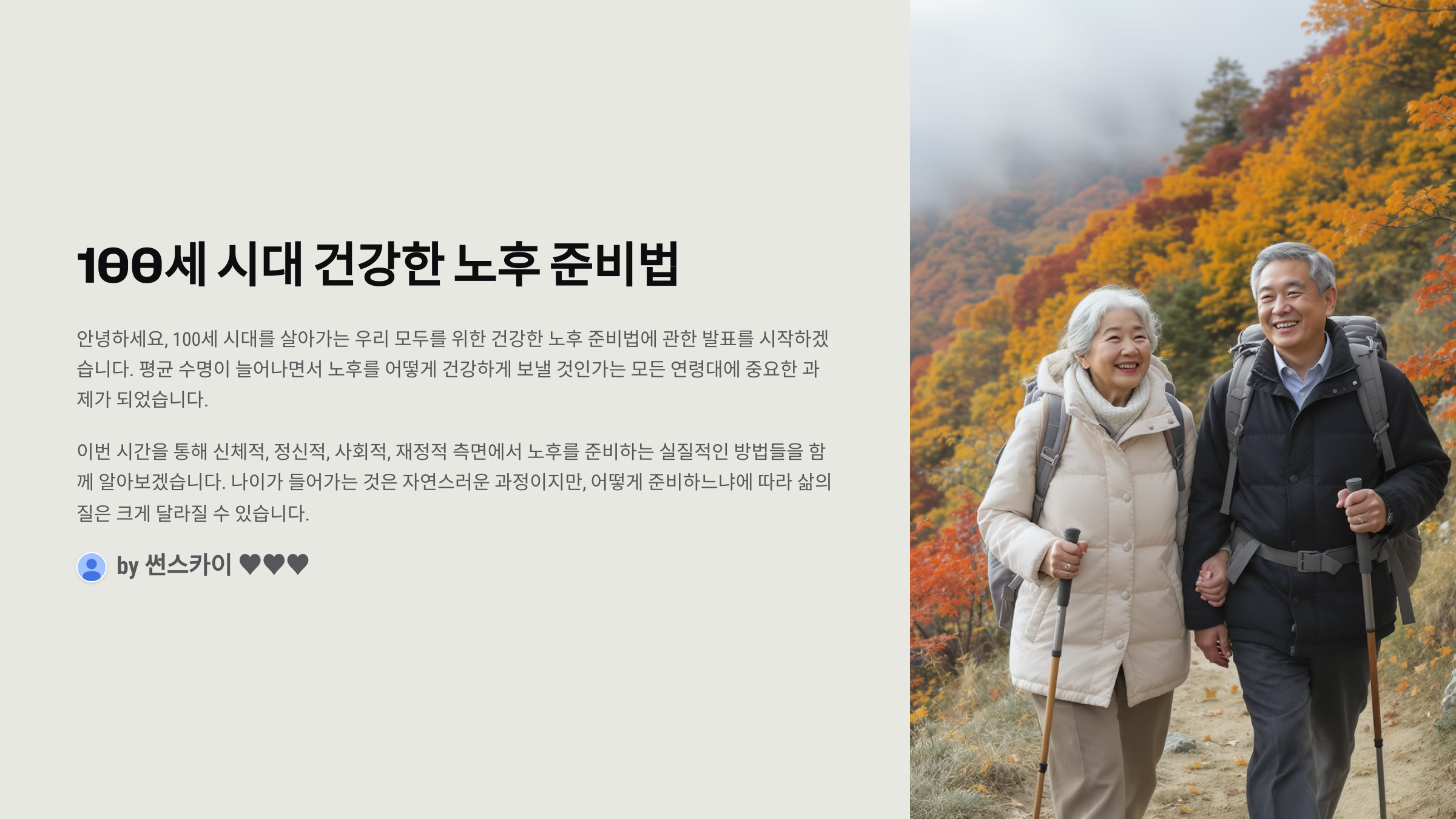 🎯 지금부터 준비하면 100세 시대도 건강하게 누릴 수 있어요!