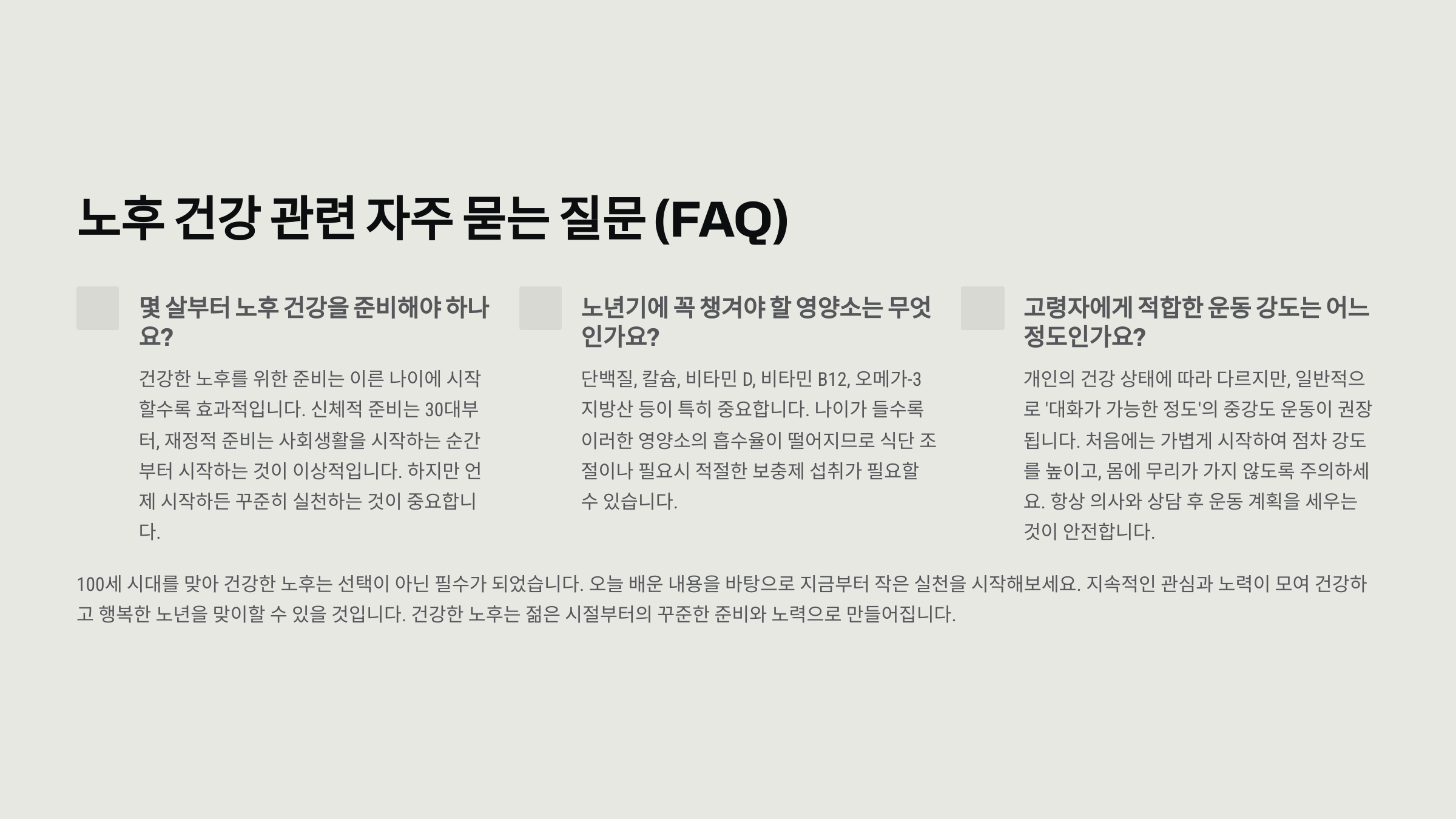 ❓ 노후 건강 관련 자주 묻는 질문 (FAQ)