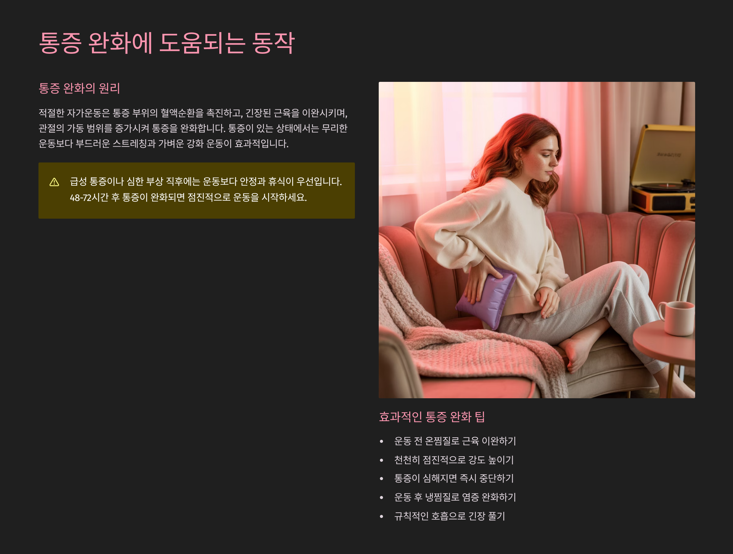 ※ 본 콘텐츠는 건강 정보 제공 목적이며, 의학적 진단이나 치료를 대신하지 않아요. 통증이나 증상이 지속되면 반드시 의료 전문가의 상담을 받으세요.