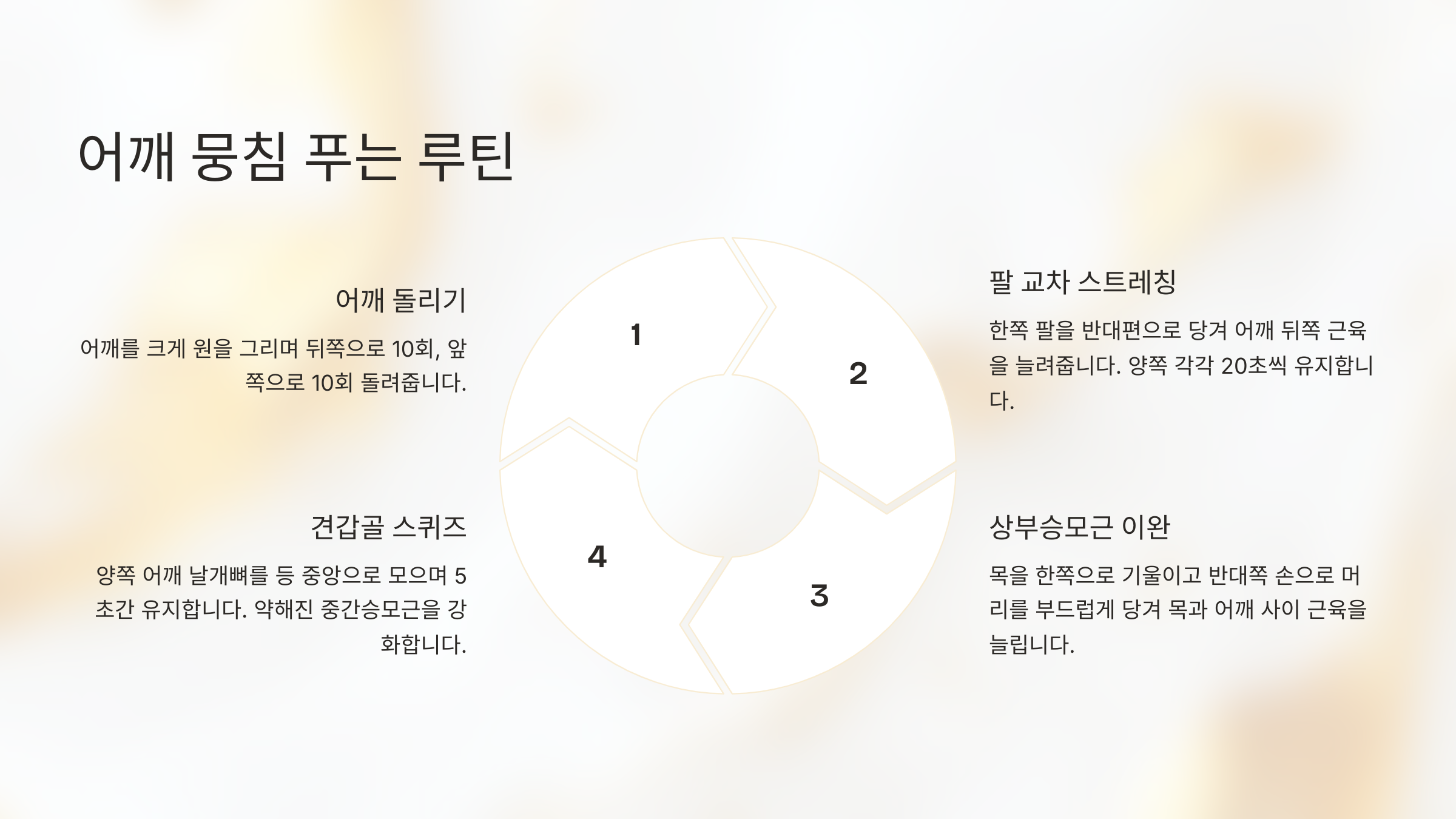 지금 바로 따라 해보세요. 단단하게 굳었던 어깨가 서서히 이완되는 느낌이 들 거예요. 하루 2회, 단 5분이면 충분해요!