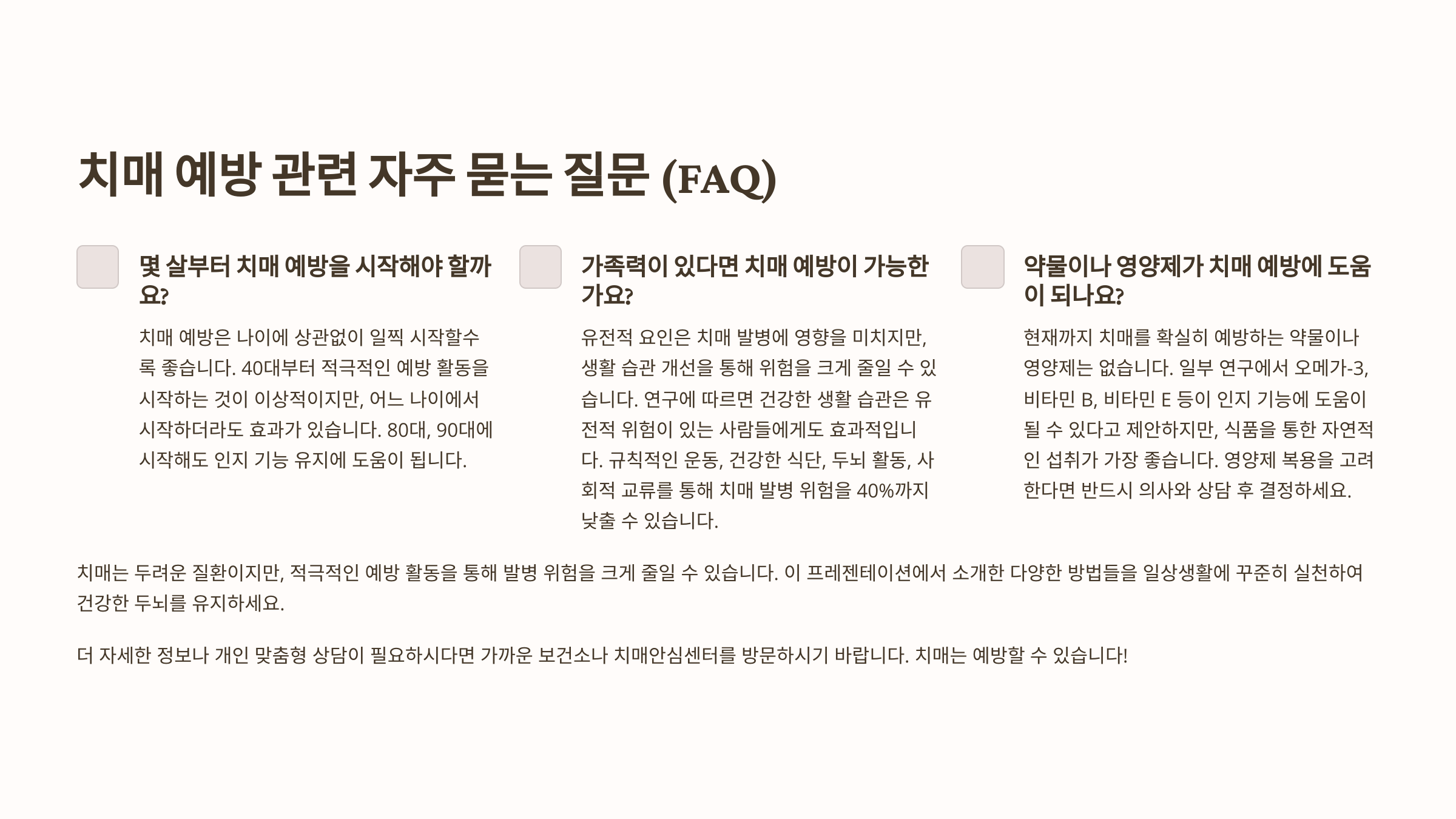 ❓ 치매 예방 관련 자주 묻는 질문 (FAQ)