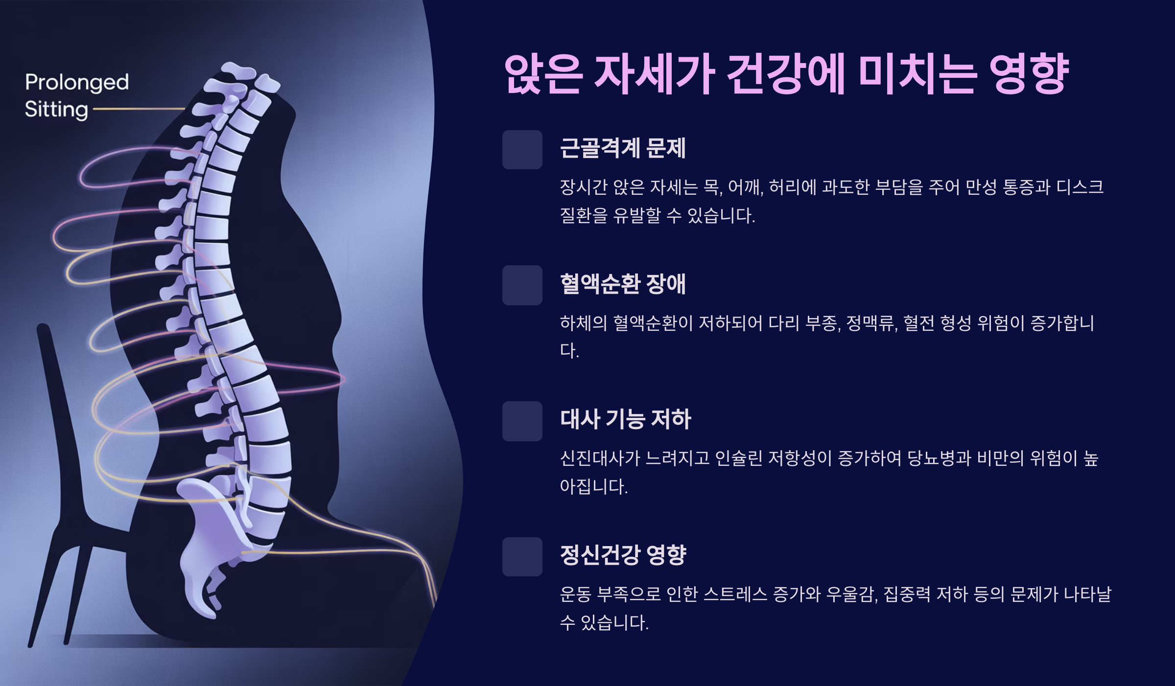 📉 잘못된 앉은 생활이 유발하는 대표 질환
